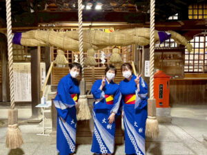 この日は、利用者様の送迎後、職員は総社宮で開催される「宮筋物語」に参加する予定でしたので、