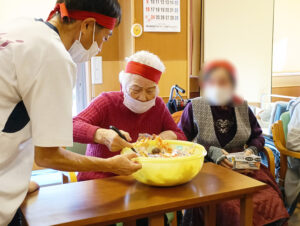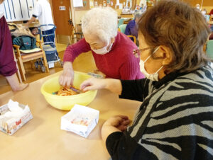 →ご利用者様がおやつの時間に召し上がるおかしをすくいます!