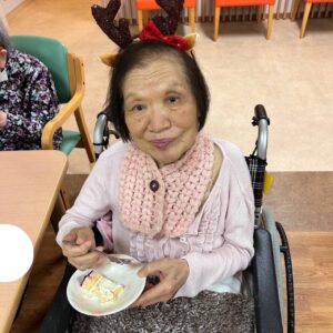 入所です🌳 12月24日のおやつは、クリスマスケーキが登場しました🎂 また、皆さんそれぞれ好きな飲み物を選んでいただき、いつもとは少し気分が変わるおやつタイムになりました☕
