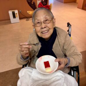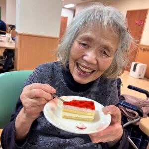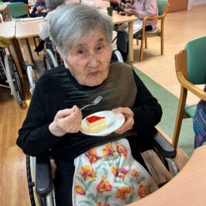 見た目も可愛いケーキに利用者様からは思わず笑顔が溢れ、 心も温まる時間になりました😍