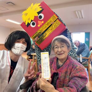 職員扮する巫女さんと神主と獅子舞が現れ、皆さんと一緒に新年の挨拶を行いました⛩