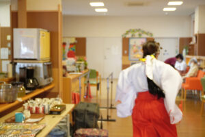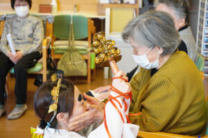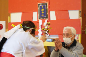 ご利用者様1人ひとりに、鈴を鳴らして「今年も元気に過ごせますように」と、お祈りをしています🔔