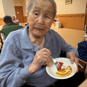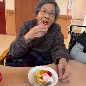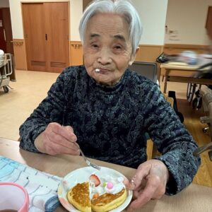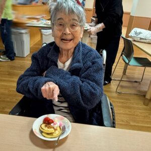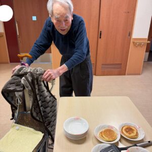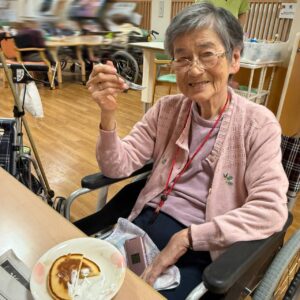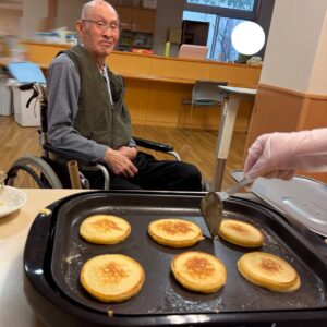 フロアで焼き始めえると… 甘い匂いに食べる前から興味をもたれる利用者様もいらっしゃいました👏🏻👏🏻👏🏻
