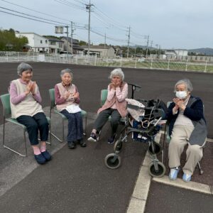 外は少し風は吹いていましたが過ごしやすい気候で皆さんとても喜ばれていました💓 歌を歌ったり、体操をしたりと久しぶりに外で楽しい時間を過ごすことができました(^○^)